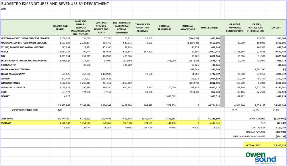 Unfortunately we are still conducting business as usual and Owen Sound's service delivery is the most inefficient of seven similar municipalities in a study group. Ian Boddy was first elected to Owen Sound Council in 2010. In 2011 Owen Sound expenses were $40,140,392 and taxes were $ 22,044,641. The draft Audit Financial Statements state that revenue from taxation was $33,095,738 and total expenses were $59,753,592 in 2022. In the 11 years, from 2011 to 2022 Taxes grew by 11.0 million at a rate of $1.0 million per year and expenses grew by $19.6 million at a rate of $1.8 million per year.